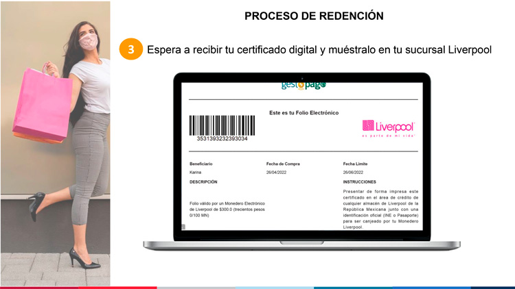 Paso 3. Espera a recibir tu certificado digital y muéstralo en tu sucursal Liverpool