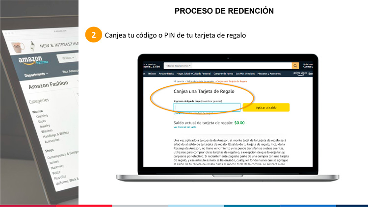 Paso 2. Canjea tu código o PIN de tu Tarjeta de Regalo Digital.